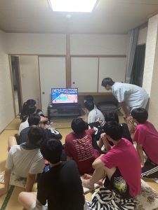 豊かな自然に囲まれた、過ごしやすい環境の中で、バスケットに熱中する4日間を過ごすことができました。夜はオリンピックの初戦ドイツ戦と日程が重なり、仲間とともにバスケを観戦するという経験もできました。