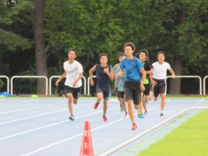 短距離は、走り込みの練習を中心に、技術と体力の向上をはかりました。この夏の練習で最もきついメニューを選手達はお互いに声を出し励まし合いながら、全員で突破することができました。特に4日目の午後に行った40秒間走では、1・2年、男女の区別なく競り合い、全力を出し尽くしたレースが繰り広げられ、「走りきった」という大きな達成感に涙が溢れる選手もいました。